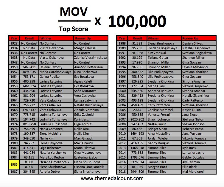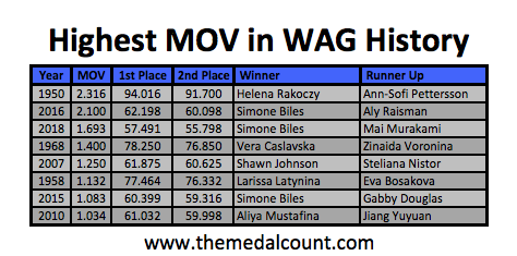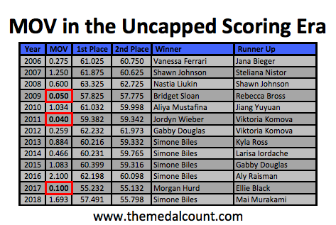 Link: A List of the Margin of Victory For Every Gymnastics Competition