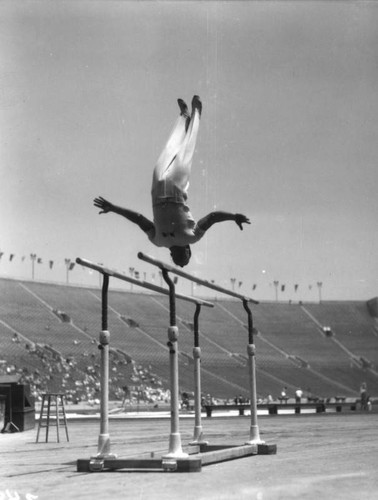 Club swinging was exclusively an American event being held only in the two times the Americans hosted the Olympics (1904 and 1932). If not for the United States hosting the Olympics, it wouldn’t have ever been contested. Rope climbing and tumbling were also events that hadn’t regularly been part of the Olympic program. While tumbling is designated as a separate from MAG under modern rules, under 1932 rules it was under the umbrella of MAG.