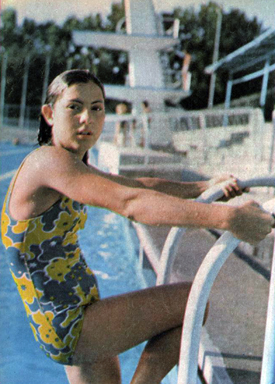 At the 1964 Olympics Iran sent women to the Olympics for the first time in its history. On its Olympic team of 62 athletes, four of them were women. The first three were Nazli Bayat Makou, Juliette Geverkof, and Simin Safamehr. All three of them were between the ages of 17-19 and competed in athletics (track and field). Djamileh Sorouri was different, not only because she was participating in a completely different sport, but because of her age. Djamileh Sorouri was only 14 years old when she competed at the 1964 Olympics and is an example of young Olympic WAGs predating Nadia Comaneci. Djamileh Sorouri wasn’t exactly new to the scene as she reportedly had been an Iranian National Champion at just nine years old.