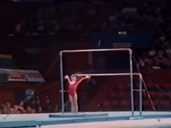 At the 1989 Konica Cup Natalia Laschenova wore this leo which requires a GIF in order to do it justice.