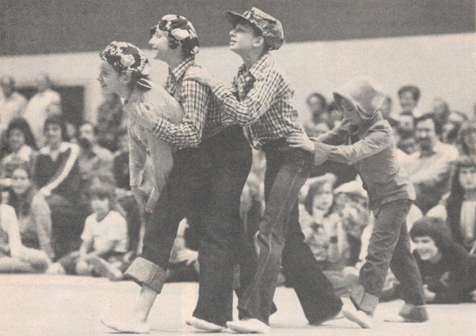 There was another version of this routine which features a bull. I don’t know who is playing the role of the bull, but on the left is Marilena Vladarau while on the right Rodica Dunca is next to Nadia Comaneci.
