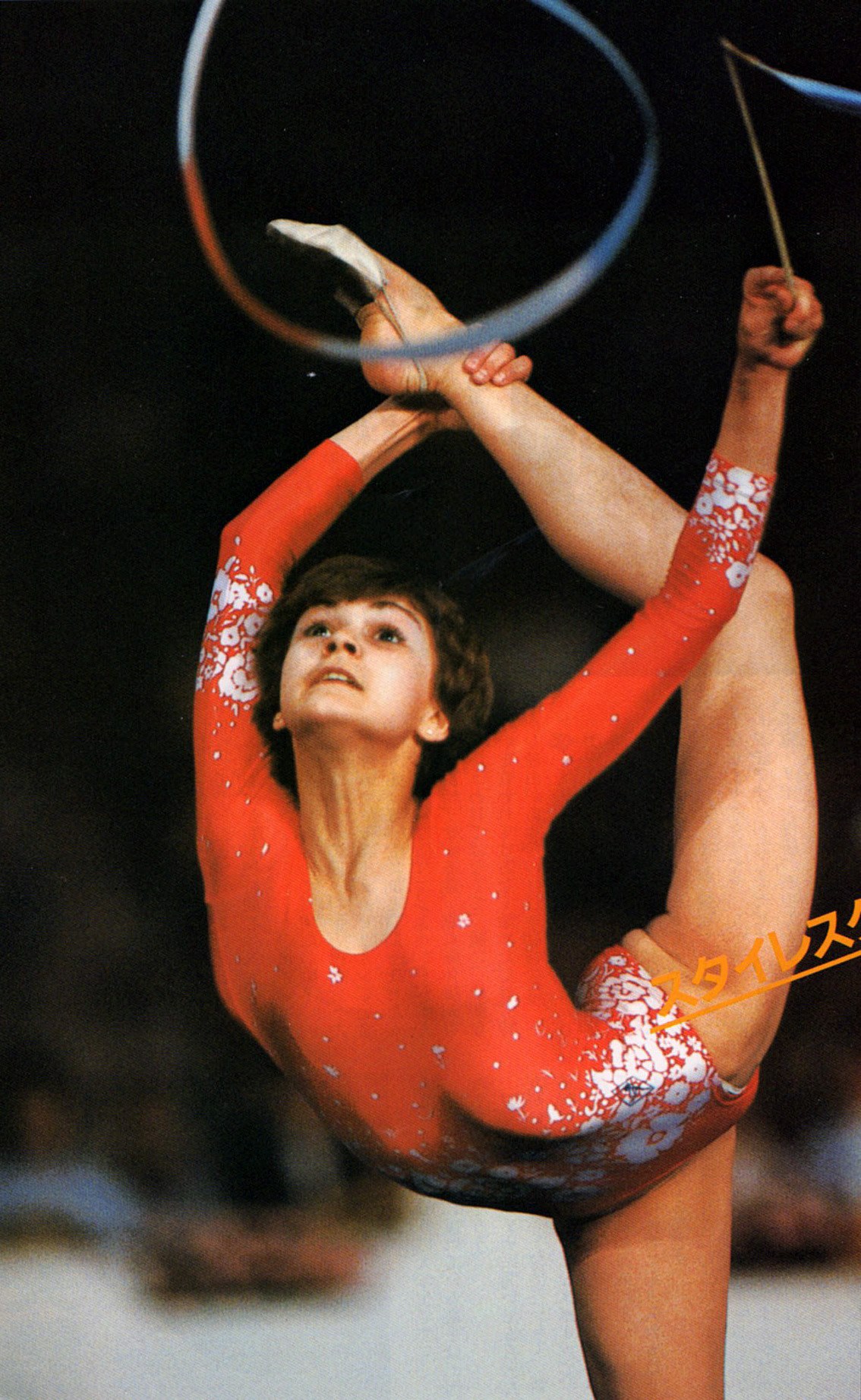 The leotard was also worn by a significant number of rhythmic gymnasts. Soviet gymnast Tatiana Druchinina wore the red version. She won a gold medal at the 1987 World Championships.