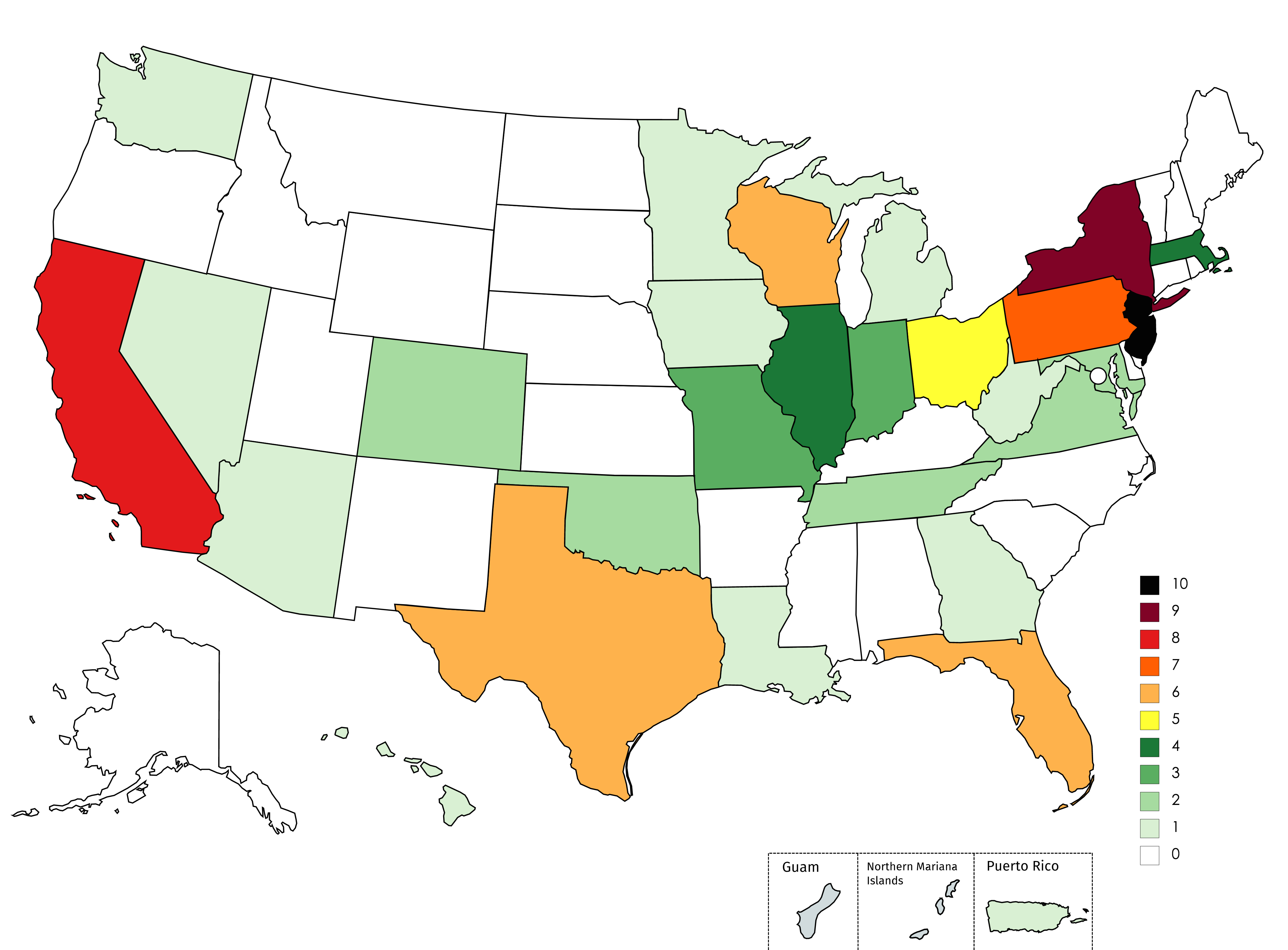 Below is a ranking of which states have had the most Olympians in women’s gymnastics born in their respective state. This article is part of a 3-part series, the other two parts are linked above.