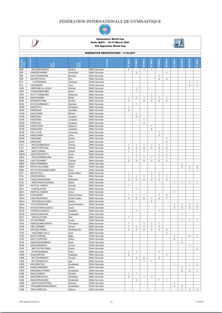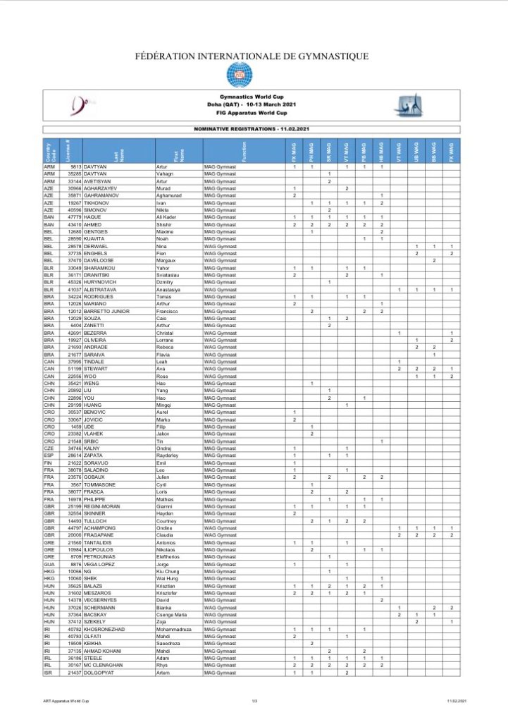 It was also announced that the European Championships in MAG & WAG that are slated to be held in Basel will be held without spectators.