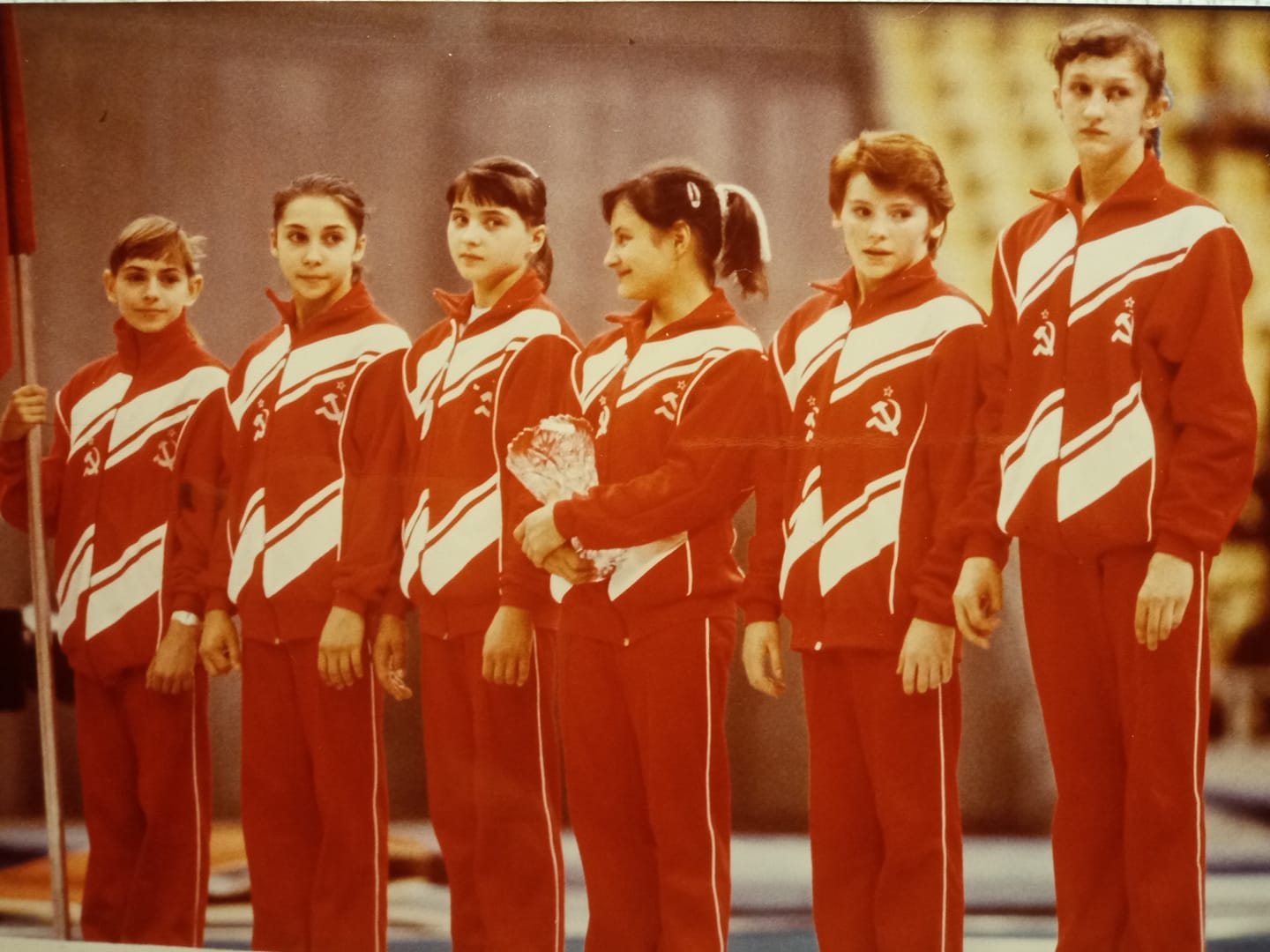 Shevchenko (far left) and Bicherova (3rd from left) 1987