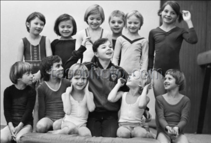 For those who follow me on Twitter, you are probably aware that this is one of my favorite pictures and I love challenging fans to find the Olympian in this picture. My understanding is that it is dated to 1981 when Olga Bicherova was at the height of her career. Bicherova won the All-Around title at the 1981 World Championships.