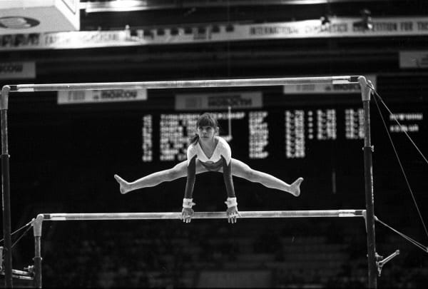 Oksana Omelianchik was an icon of 1980s gymnastics and had a lasting impact on the sport. Omelianchik won a share of the AA title at the 1985 World Championships. She has the distinction of having not one, but two different floor routines (1985 & 1987) that are regarded as amongst the most iconic in WAG history. Omelianchik helped popularized the trend of “marathoning” on floor where gymnasts perform tumbling passes that went from corner to corner, and then continue back towards the corner they originally started from. For a time marathoning was a popular trend, but has since fallen out of favor in recent decades.